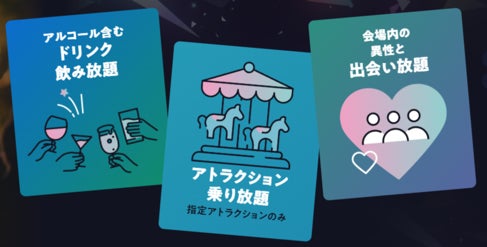 「アトラクション乗り放題」「アルコール含むドリンク飲み放題」「出会い放題」