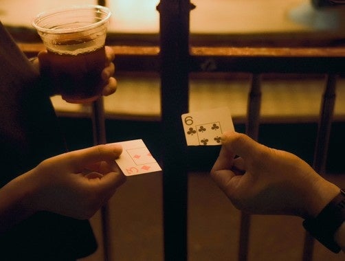 入場時に配られた、半分に切ったトランプの片端を、異性が持っています。
