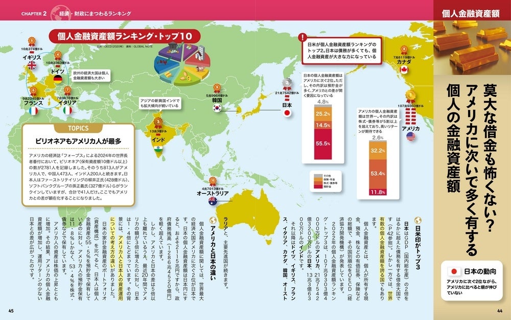 本書は国力を成すさまざまな指標を用いながら、シリーズならではの図解で世界の国々の今の姿を浮き彫りにします。