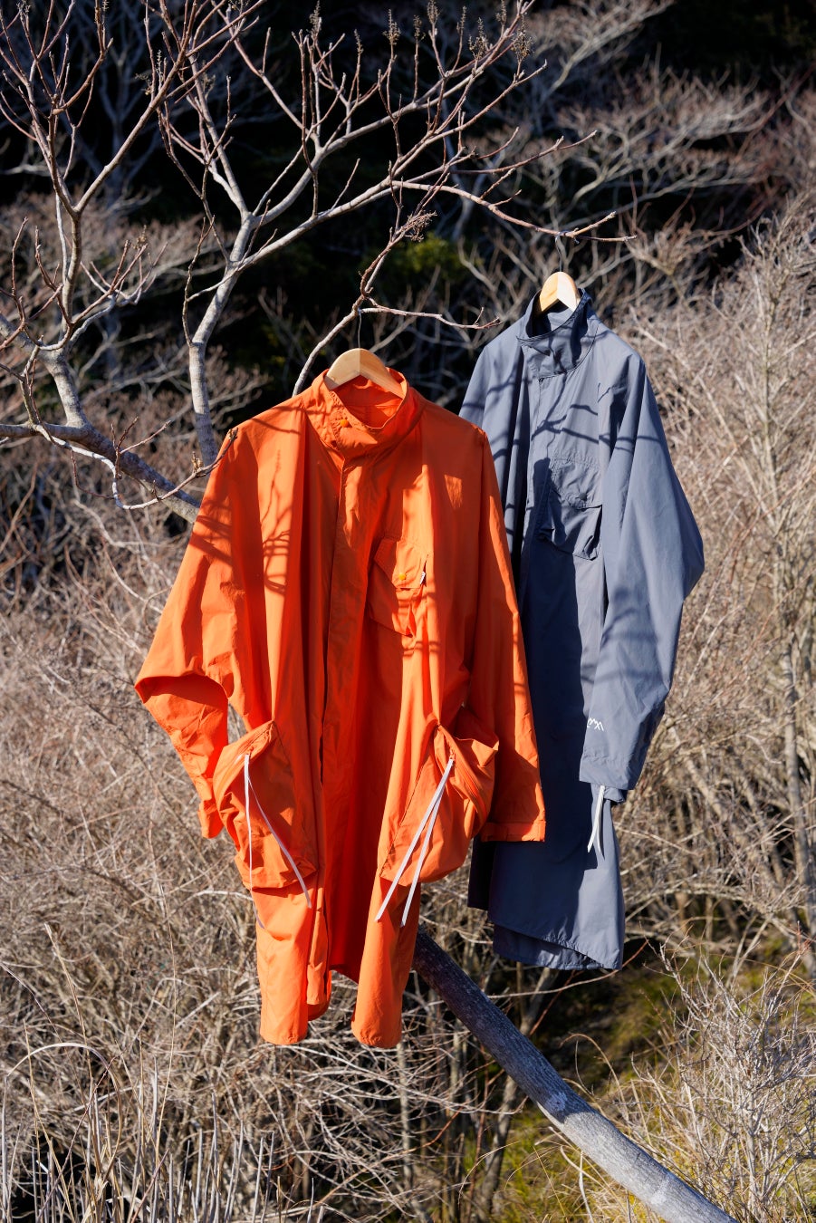 梅雨時期はレインコートに、寒い時期にはダウンやアウター、バックパックの上から羽織