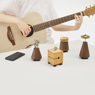 「RhythmBot」: アコースティックな音を奏でる4体のロボットによるメトロノーム。スマートフォンと連動し、演奏者のテンポに合わせてリアルタイムにセッションします。