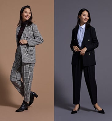 ジャケットは着丈長めで、カジュアルにも合わせやすいよう工夫しました。裾に向けて細くなるパンツは腰回りにゆとりを持たせ、こなれ感を演出。ワンピースは、レイヤードがしやすいようVネックを採用するなど、こだわりのアイテムが完成いたしました。
