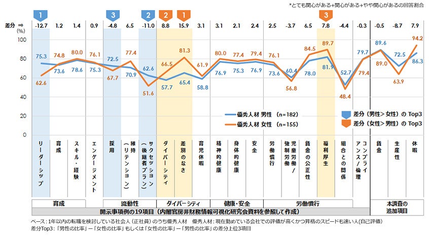 女性は「差別のなさ」「ダイバーシティ」「福利厚生」への関心が高い傾向