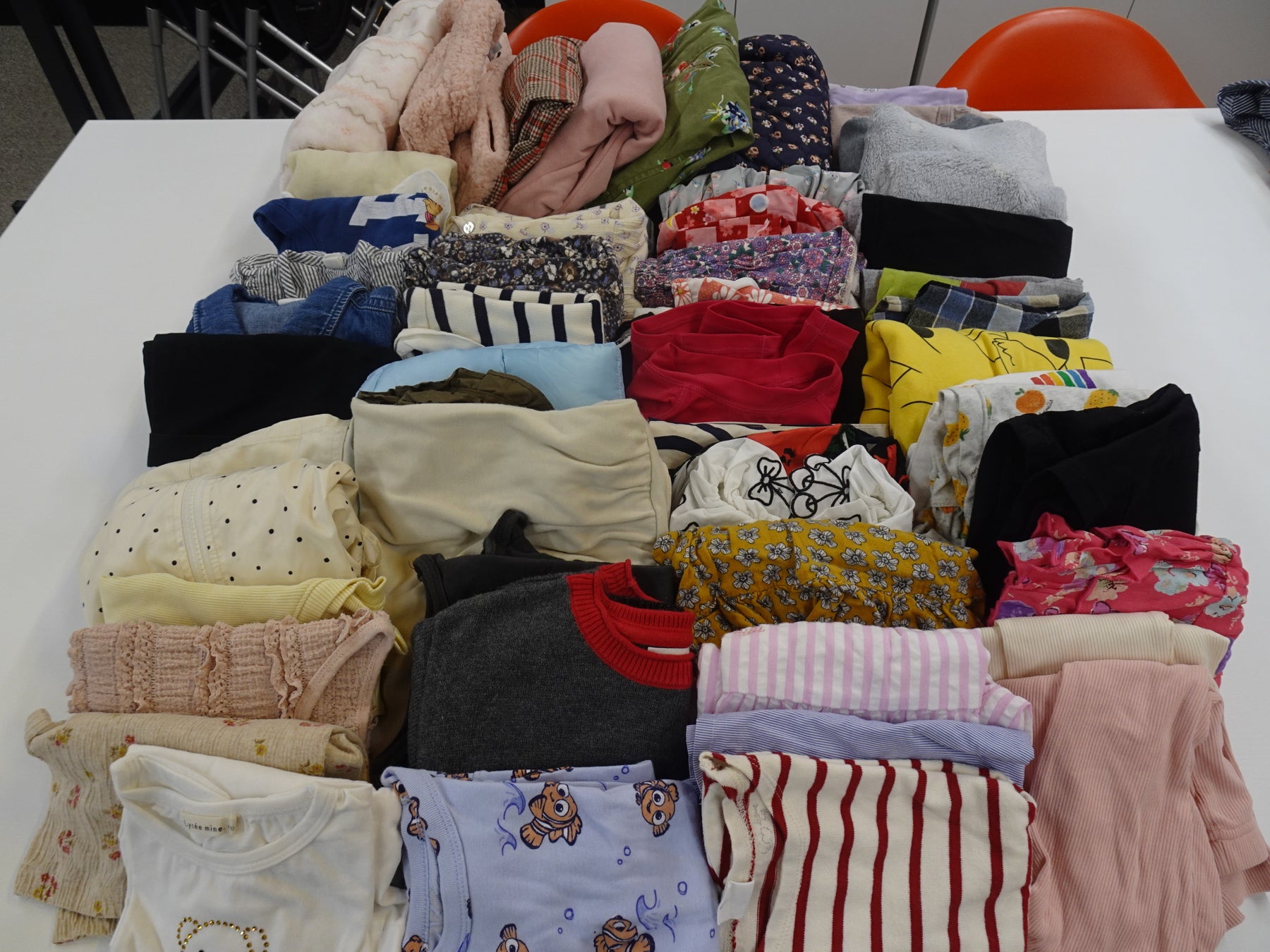 この度、アドバンスト・メディアの本社があるサンシャインシティ様にお声がけいただき、豊島区の子育て家庭の皆様にお届けする子ども服・雑貨・絵本を社内で募り、約200点の物品が集まりました。