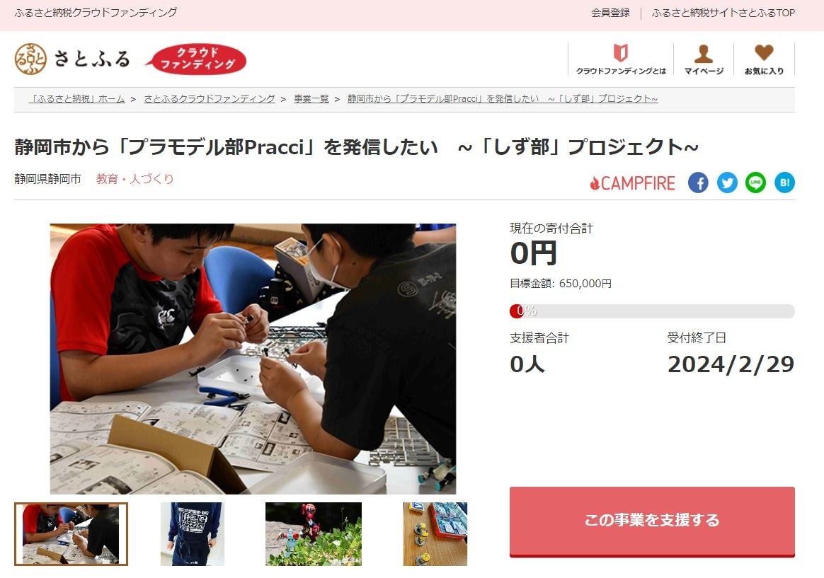 静岡県静岡市とさとふる、地元中学生を中心とした活動「プラモデル部」への支援や「自然豊かな里山体験」実施のため寄付受け付けを開始