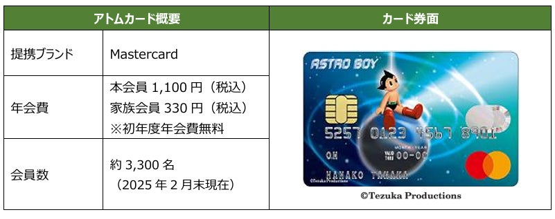 三井住友カード株式会社(本社:東京都江東区、代表取締役 社長執行役員 CEO:大西 幸彦、以下「三井住友カード」)と株式会社手塚プロダクション(本社:東京都新宿区、代表取締役社長:松谷 孝征、以下「手塚プロダクション」)は、社会貢献型クレジットカード「アトムカード」を発行しています。2003年より発行している「アトムカード」は、"子どもたちの夢を形にする"、"子どもたちの未来づくりに何らかの役に立ちたい"という手塚治虫先生の想いが込められており、カードのご利用金額の0.3%が子どもたちのために寄付される社会貢献型のクレジットカードです。