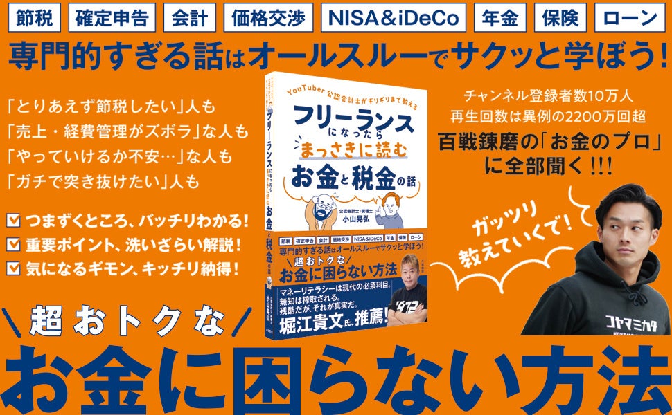 【堀江貴文氏推薦!】マネー知識低めの文系フリーランスが、百戦錬磨の「お金のプロ」に全部聞いた!!!『フリーランスになったらまっさきに読むお金と税金の話』発売(12/19)。