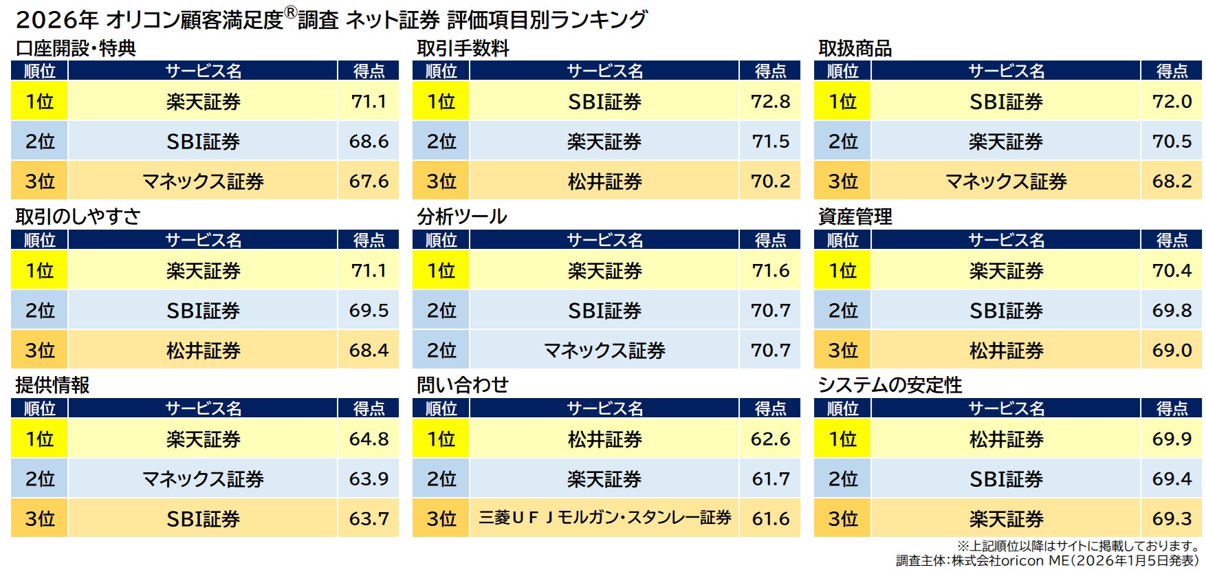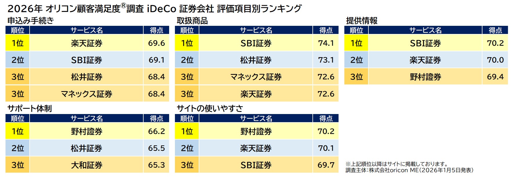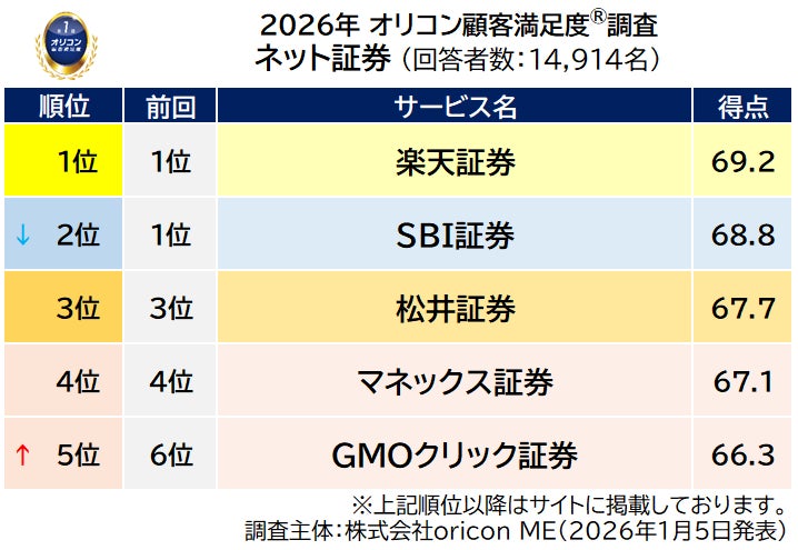 オリコン株式会社(本社:東京都港区 代表取締役社長:小池 恒、略称:オリコン)は、グループ会社である株式会社oricon MEが、実際のサービス利用者を対象に第三者の立場で実施した『ネット証券』『iDeCo 証券会社』についての顧客満足度調査の結果を、2026年1月5日(月)14時に発表いたしました。