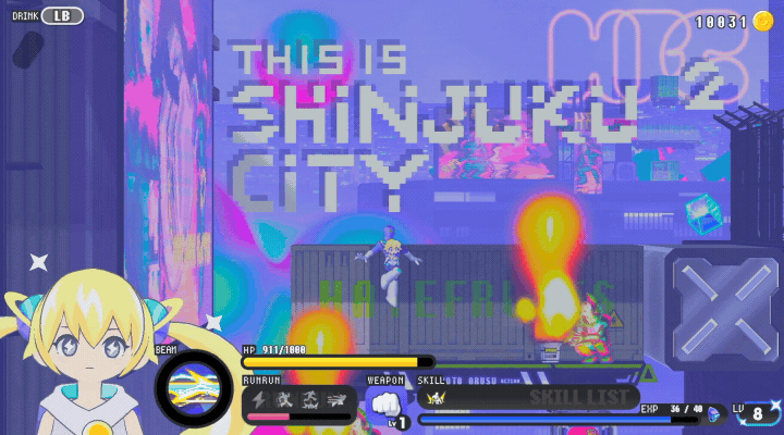 平和な街シンジュクシティを侵略する謎の宇宙人集団ヘイトフルーツカンパニー(HFC)をぶっ飛ばす、ふたり一緒の愉快な冒険。これは、2Dアクション―――“デート”だ!!