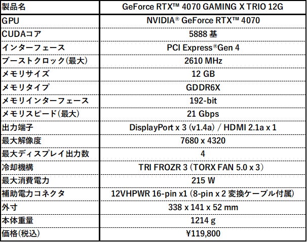https://jp.msi.com/Graphics-Card/GeForce-RTX-4070-GAMING-X-TRIO-12G
