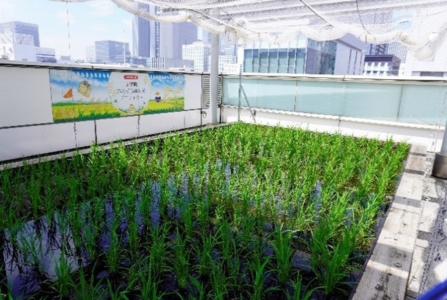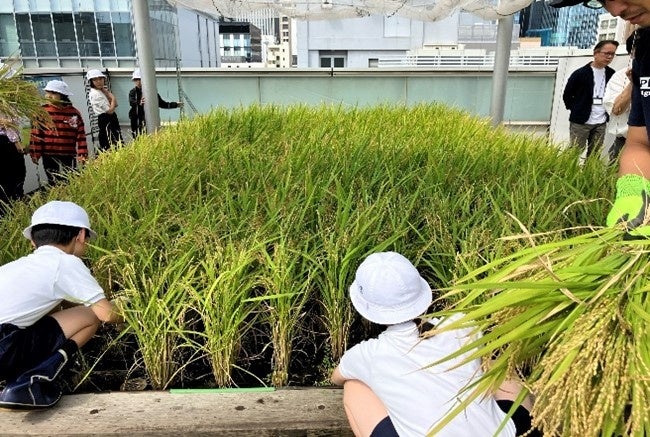 その一環として2020年より、東京都中央区日本橋茅場町にある茅場町オフィスの屋上に田んぼを作り、子供たちと一緒に米づくりを行う「茅場町あおぞら田んぼプロジェクト」に取り組んでおり、本年も中央区立阪本小学校の児童たちと一緒に田植えから収穫までの米づくり体験を行いました。