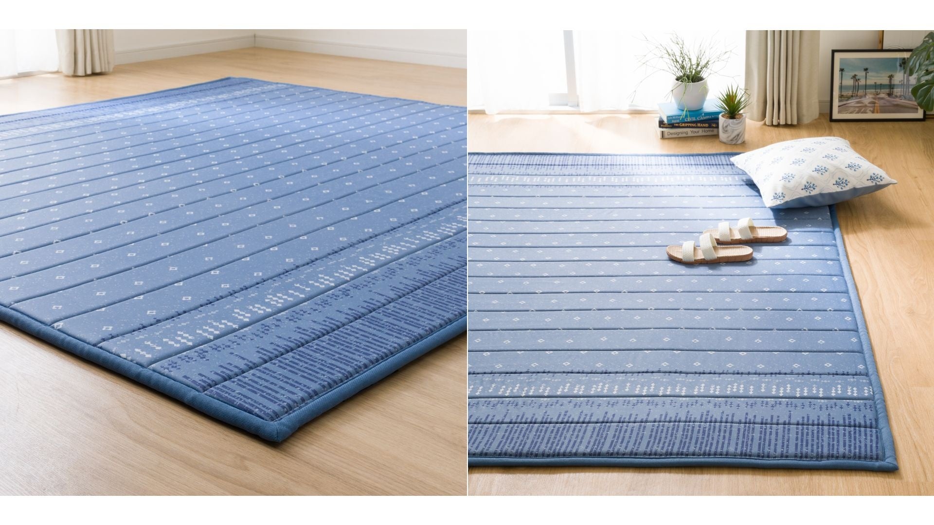 ニトリのNクールラグで、汗ばむ時季もリビングでひんやり、ゆったりくつろぎませんか。