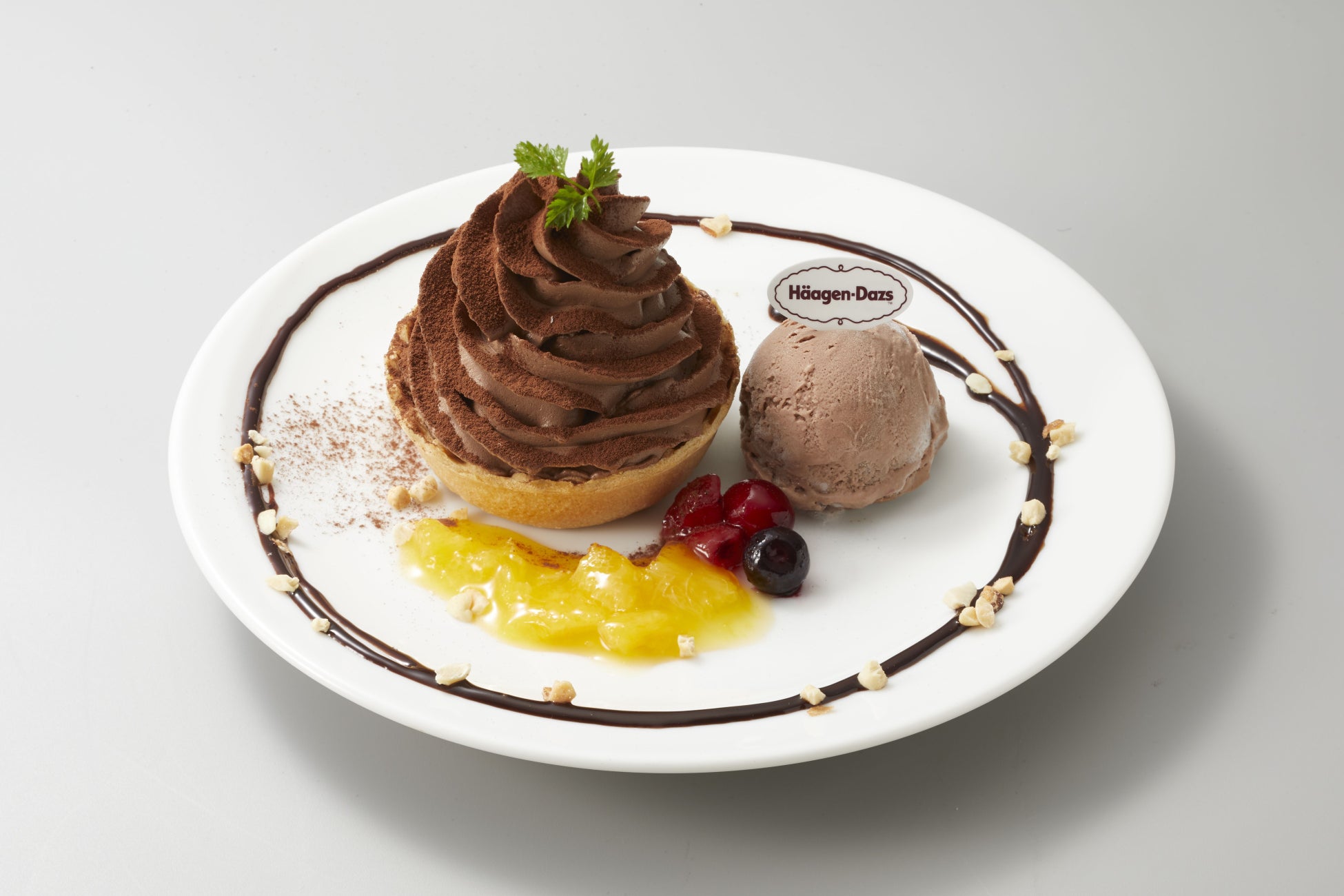 なめらかなチョコプリンにナッツとクッキークランチを添えて、食感のアクセントと濃厚さが絶妙にマッチ。