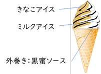 きなこアイスにはきなこを加え、香ばしさをしっかりと味わえるようこだわりました。また、きなこの香ばしさをいっそう引き立てるために、隠し味として食塩を加えています。これによりアイスの甘さが引き立ち、きなこの風味がより豊かに広がります。