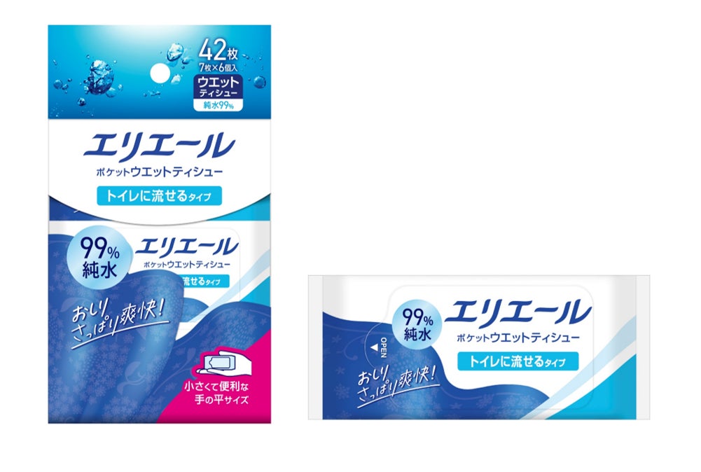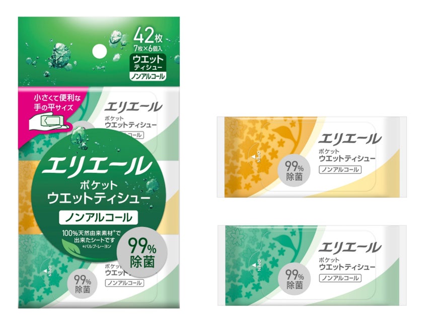 エリエールのおなじみのデザインが、手の平サイズのウエットティシューになって登場!「エリエール ポケットウエットティシュー」 3種を新発売