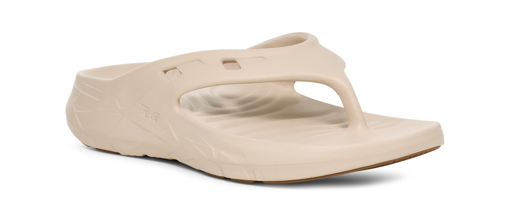 アウトソールの磨耗しやすい部分にはグリップ力のあるトラクションを発揮するラバーポッドを配置し、耐久性とトラクションを強化しています。脱ぎ履きしやすく、キャンプや旅行、リラックスシーンなどで活躍します。トレイルを歩いた一日の終わり、靴を脱いで足をふわっと包み込むような心地よさを感じられる、Tevaならではのリラックスサンダルです。