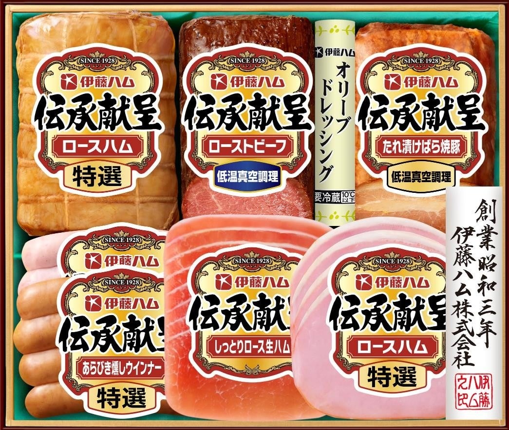 伝承献呈は、長年にわたりお客さまにご愛顧いただいている、弊社を代表するハム・ソーセージギフトブランドです。今年は、年々厳しさが増す日本の暑さに着目し、爽やかさや涼を感じさせる要素を盛り込み、ローストビーフとロースハムスライスを商品化し、オリーブの実が入ったドレッシングをご用意しました。伝承同様にブロック&スライス形態のセット商品も発売します。