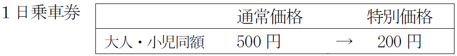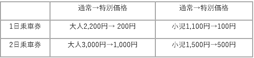 ※2日乗車券は、販売期間内の連続した2日間に限り有効