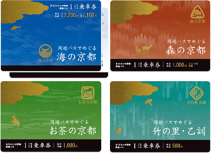 この周遊パスは、路線バス等がお得に利用できるもので、この度、「海の京都」「森の京都」「お茶の京都」各エリアの周遊パスがリニューアルされ、また、新たに「竹の里・乙訓」エリアの周遊パスが発売されます。