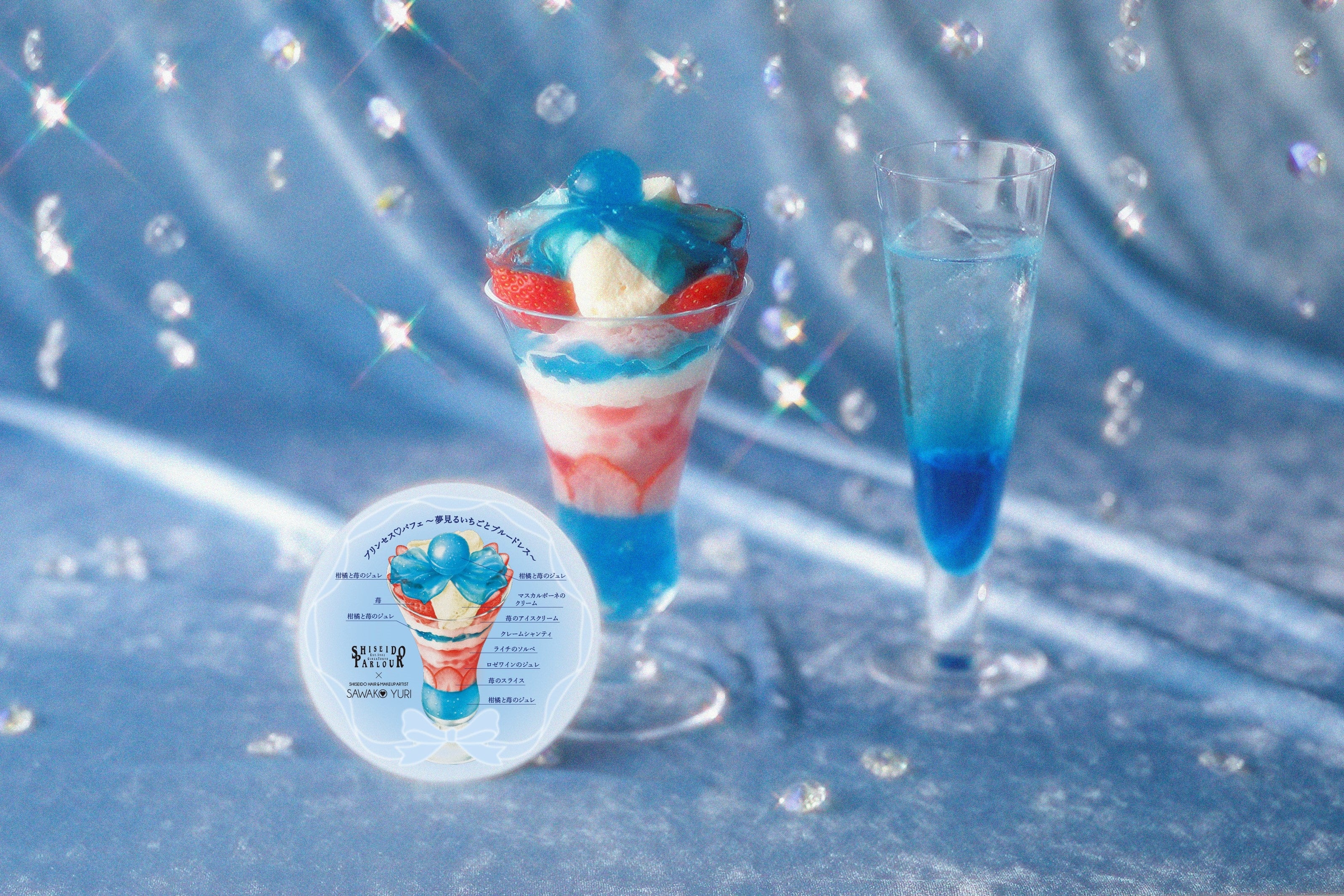 『資生堂パーラー』×『百合佐和子』コラボレーション企画第4弾 夢見るブルードレスをまとった‟プリンセス♡シリーズ“のパフェ&パフェケーキ
