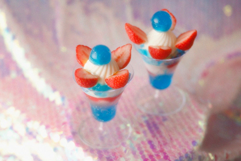 百合佐和子氏は“KAWAII”をテーマに展開される愛らしい世界観で私たちを魅了する資生堂のヘアメイクアップアーティスト。“プリンセス♡パフェ”第4弾は果物言葉に‟あなたを喜ばせる“を持ついちご。そこから百合氏がインスピレーションを得た「喜び」「幸福」のイメージを、資生堂パーラーの飲料長とともに、真っ赤ないちごの可愛らしさと華やかなブルーを組み合わせて可愛い夢見るパフェに仕上げました。ひと口食べれば、まるで魔法にかけられたかのようにブルードレスをまとったプリンセス気分を味わえる一品です。