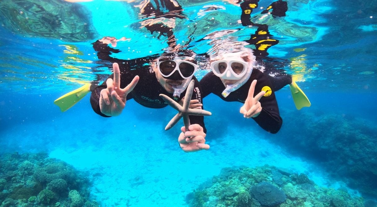 白い砂浜と透明度の高い海では、シュノーケリングなどのマリンアクティビティが楽しめます。
