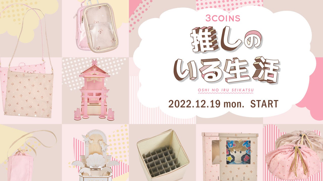 あなたの“ちょっと幸せ”をお手伝いする雑貨ブランド「3COINS」(スリーコインズ)は、推し活をより楽しむための「推しのいる生活」グッズを、2022年12月19日(月)より販売開始します。