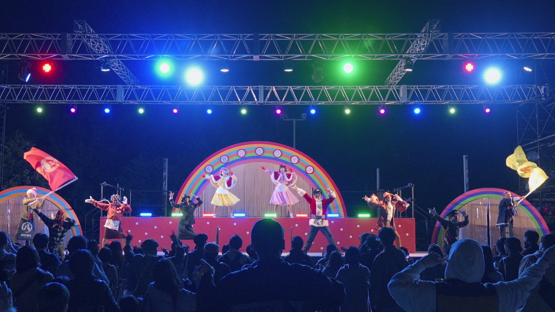 「夕日の丘商店街」を飛び出した住人たちによるハチャメチャなライブ「夕日の丘ライブ!」が、まるでイルミネーションの中に飛び込んだかのようなド派手な照明や演出を加え、「夕日の丘ライブ!ウィンター・カラフルパーティ」として登場!12月21日(土)・22日(日)・30日(月)※1は花火の特別演出により、ドカンと冬の寒さを吹き飛ばし、ボルテージも最高潮に!※130日のみショー終了後の打ち上げ