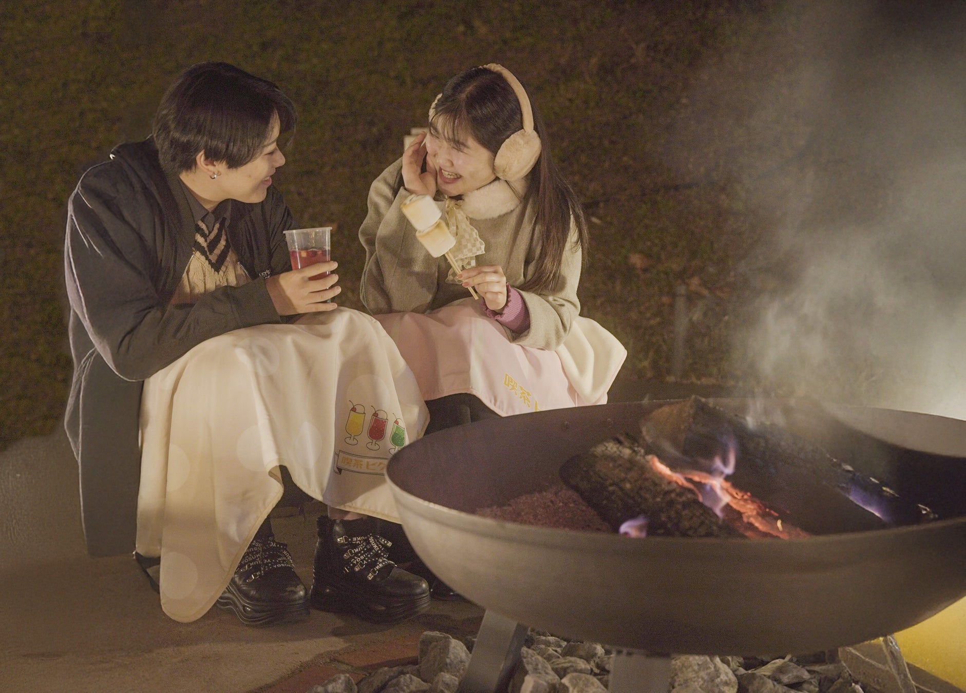 身も心も温まる憩いの焚火喫茶。販売している大きなマシュマロ(500円)を焼いて食べるのがオススメです。