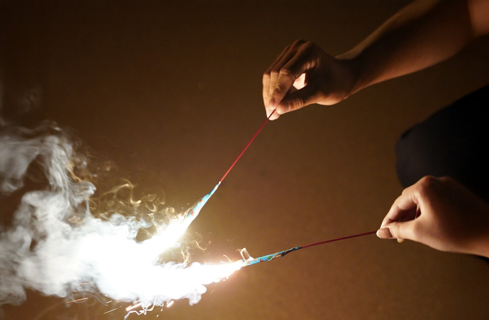 空気の透き通った冬空の下、色鮮やかな手持ち花火が楽しめます。