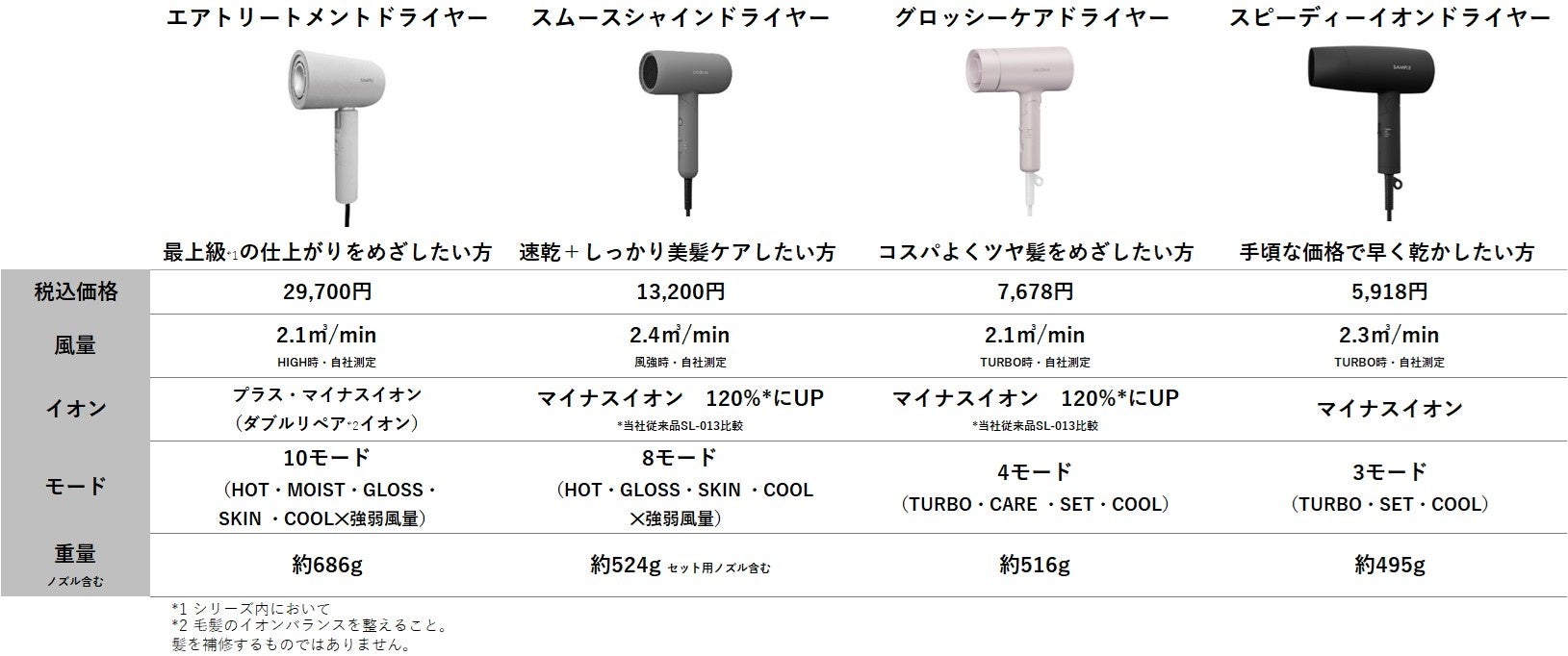 SALONIAのドライヤーシリーズは、累計販売数350万台*4を突破し、「スピーディーイオンドライヤー」(税込5,918円)、「グロッシーケアドライヤー」(税込7,678円)、「スムースシャインドライヤー」(税込13,200円)の3商品を展開していました。そこに最上位モデルがラインアップしたことにより、SALONIAのドライヤーシリーズは価格・速乾性・仕上がりにおける幅広いニーズに応え、ドライヤー市場のシェア拡充をめざします。