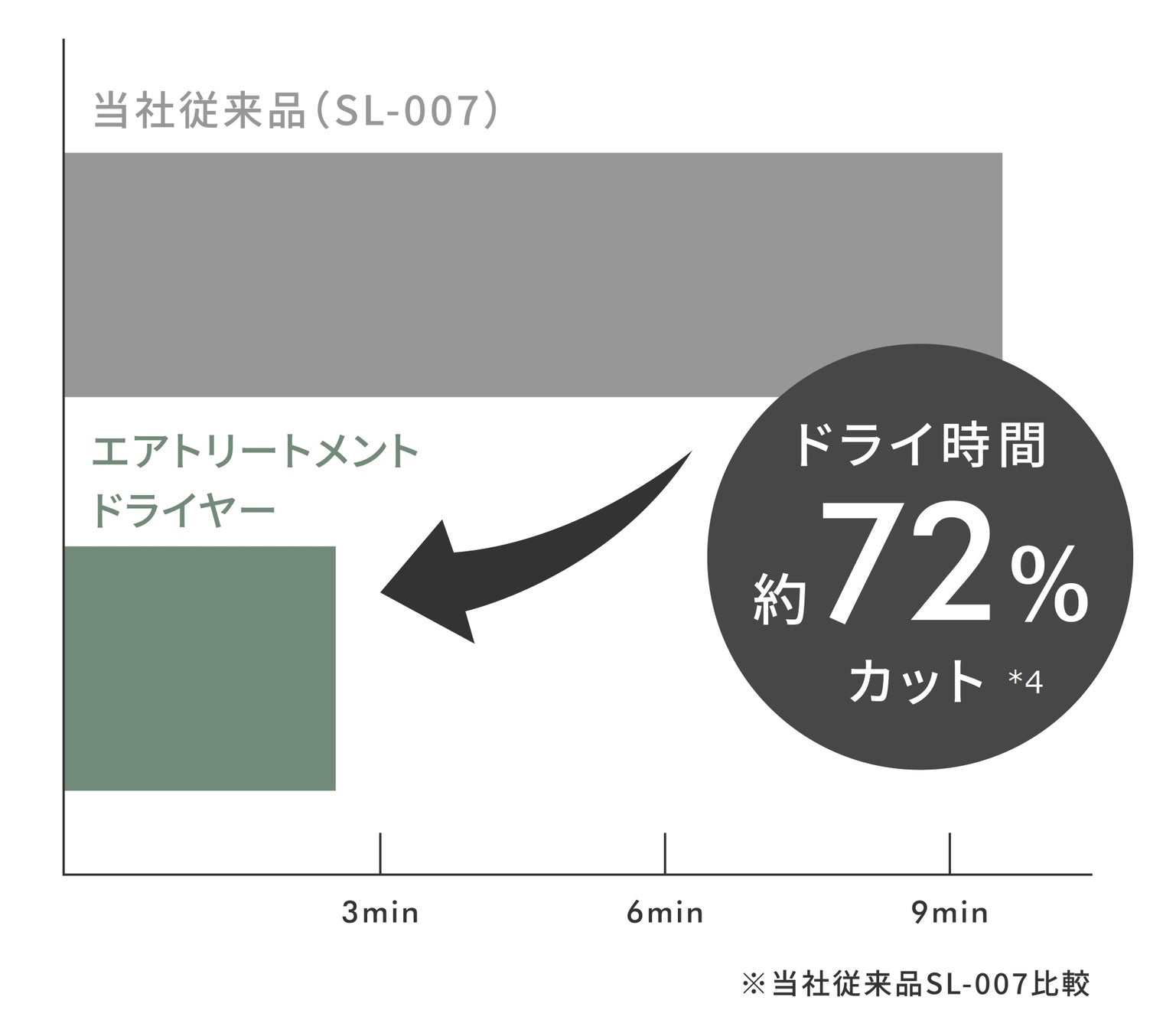 *4 自社測定。当社従来品 SL-007との比較。毛束との距離15cm。SAL24211:ノズルなし・HOT モード、