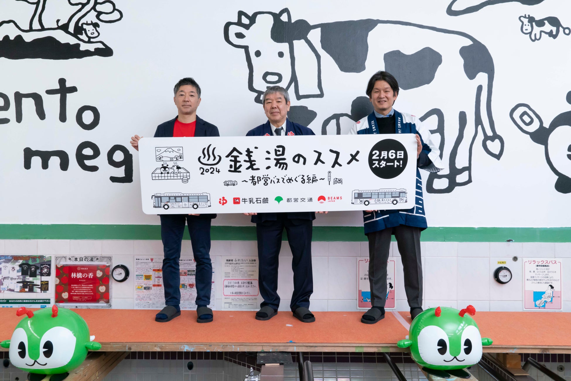 株式会社ビームスが日本の魅力を発信するBEAMS JAPANと牛乳石鹸共進社株式会社がコラボレーションし、町の銭湯の楽しみ方を発信するプロジェクト「銭湯のススメ」に、このたび100周年を迎えた都営バスを運営する東京都交通局が加わったコラボレーション企画「銭湯のススメ 2024〜都営バスでめぐる編〜」を“風呂の日”である2月6日(火)より開催します。