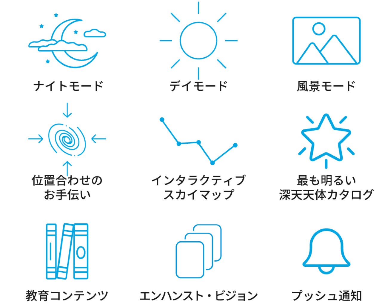 ・アプリケーション:月、太陽、明るいディープスカイオブジェクト(DSO)