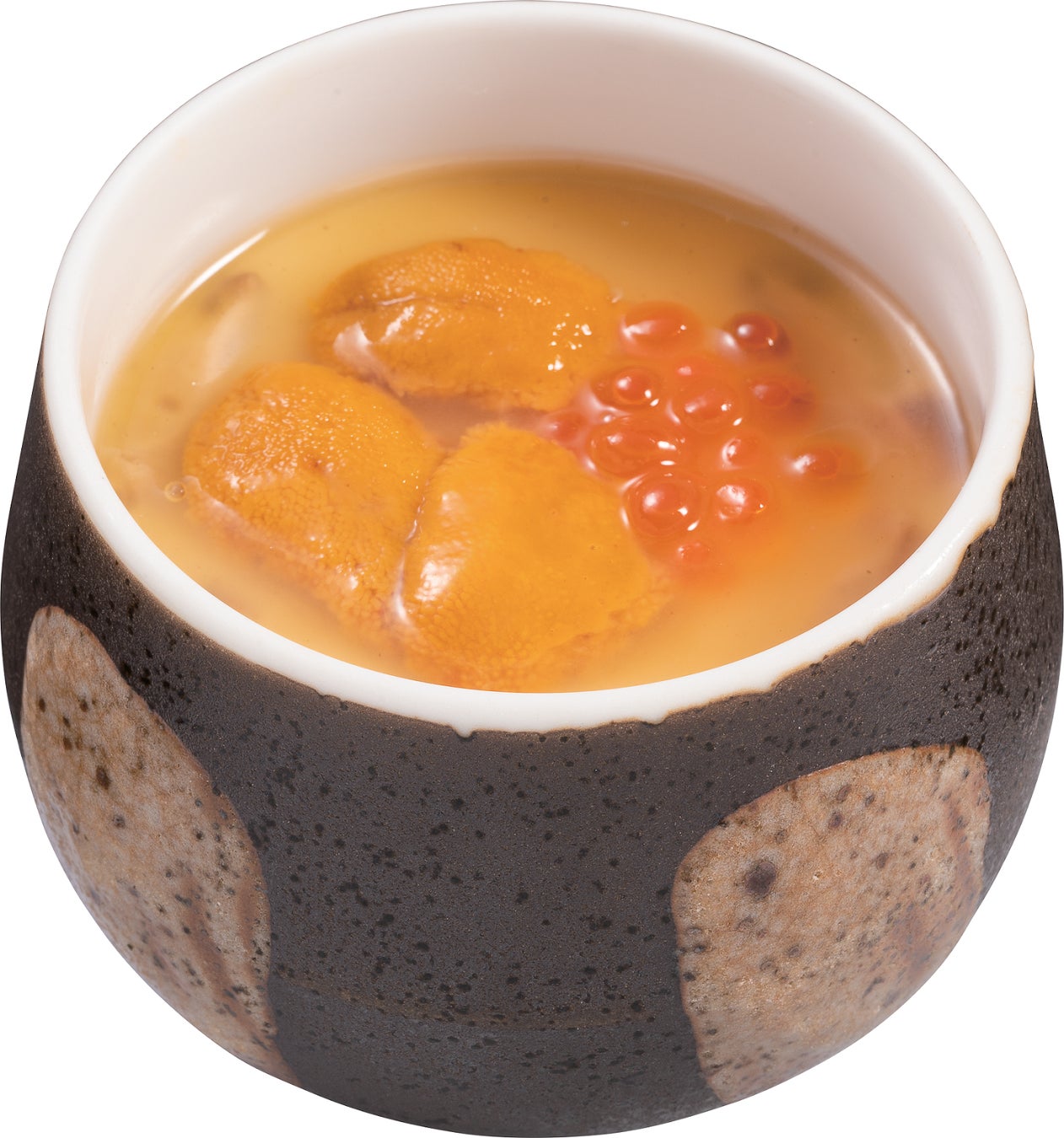 滑らかな舌触りと出汁の効いた茶碗蒸しに、うにといくらをトッピングしました。