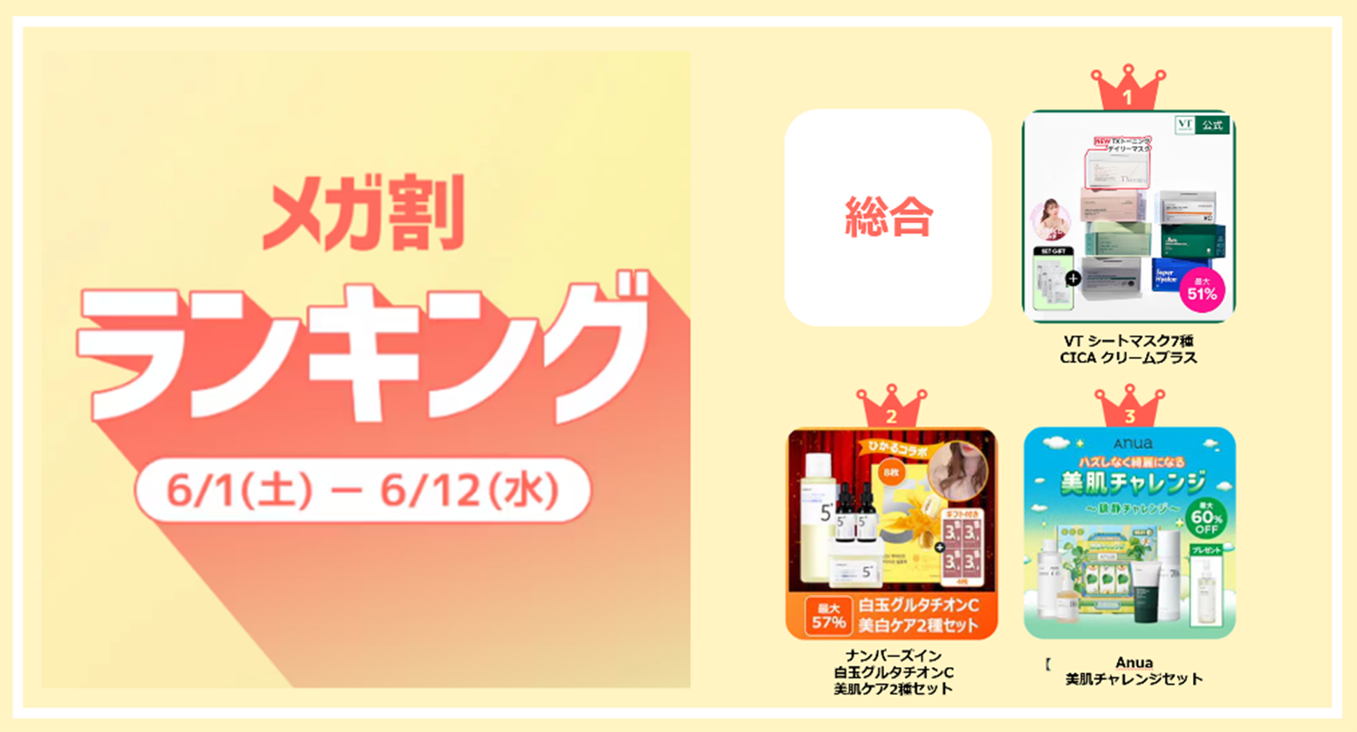 ■メガ割ランキング(期間:2024年6月1日~6月12日)