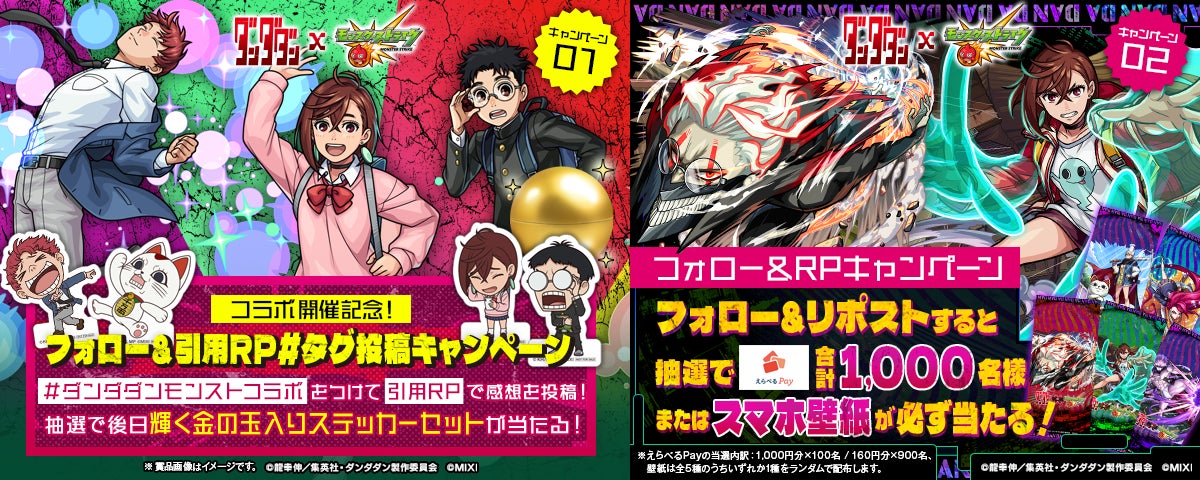 ①TVアニメ『ダンダダン』×モンスト開催記念フォロー&引用ポスト#タグ投稿キャンペーン