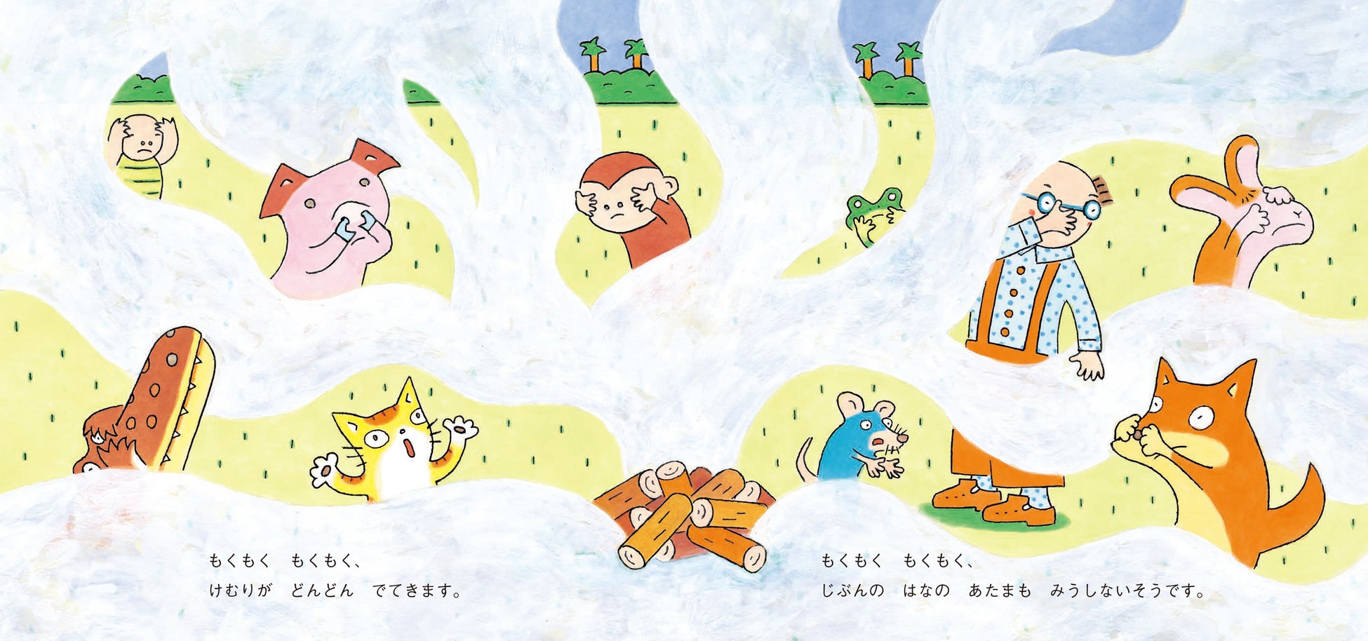 煙がもくもく、もくもく。あたりは一面真っ白に……。