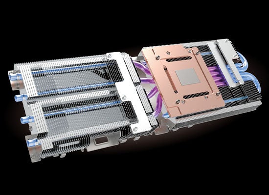 ファンブレードは優れたエアフローと空気圧で冷却性能を発揮。セミファンレス対応でノイズも抑えます。