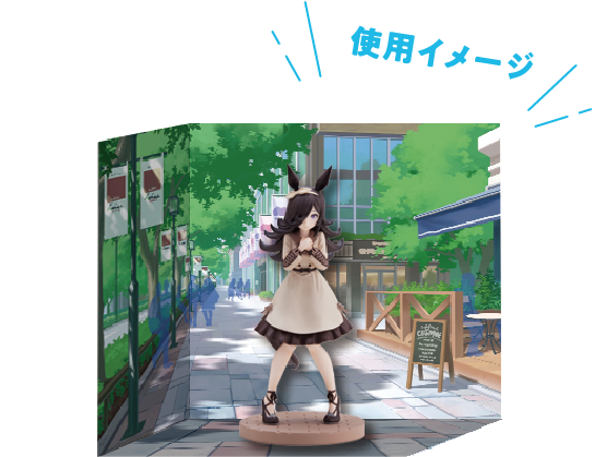 ▲【前半:5月27日(金)~】フィギュア用背景ボード (全7種/ランダム配布) サイズ: W200×D100×H210mm