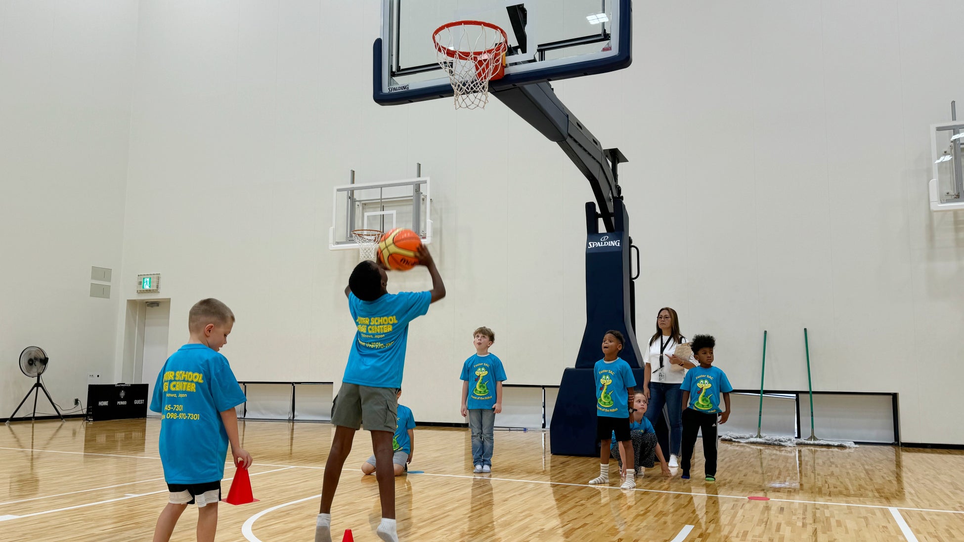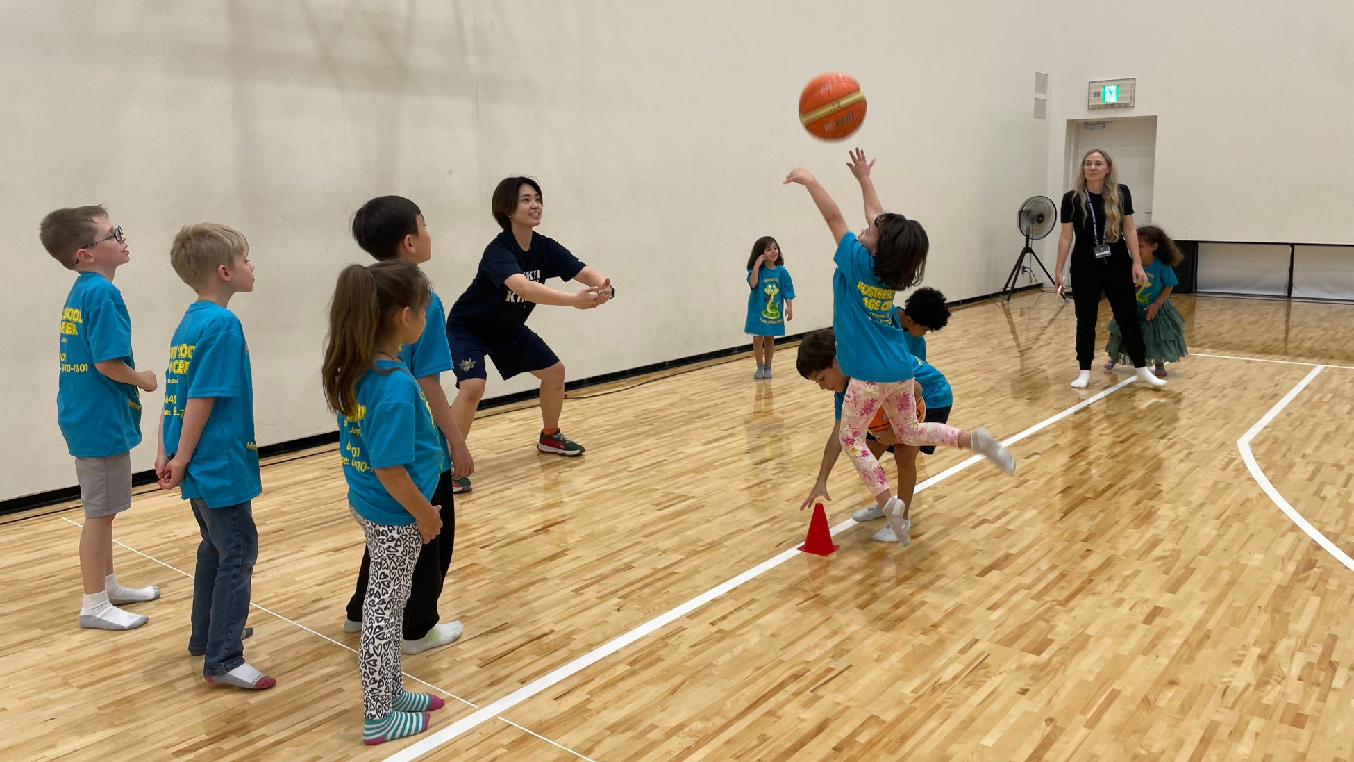 交流会では沖縄アリーナ株式会社とキングスアカデミーの協力のもと、沖縄アリーナの施設見学を行った後、サブアリーナにてバスケスクールコーチによるボール遊びやドリブルシュートなど3つのセクションに分かれてバスケ体験を行い、沖縄アリーナの魅力と、体を動かすことやバスケットボールの楽しさを体験いただきました。また交流会の最後にサプライズゲストとしてゴーディーが登場し、子どもたちと一緒に記念撮影をして交流いたしました。
