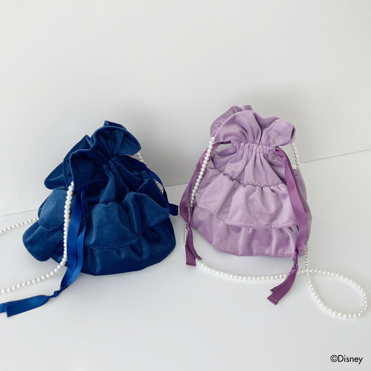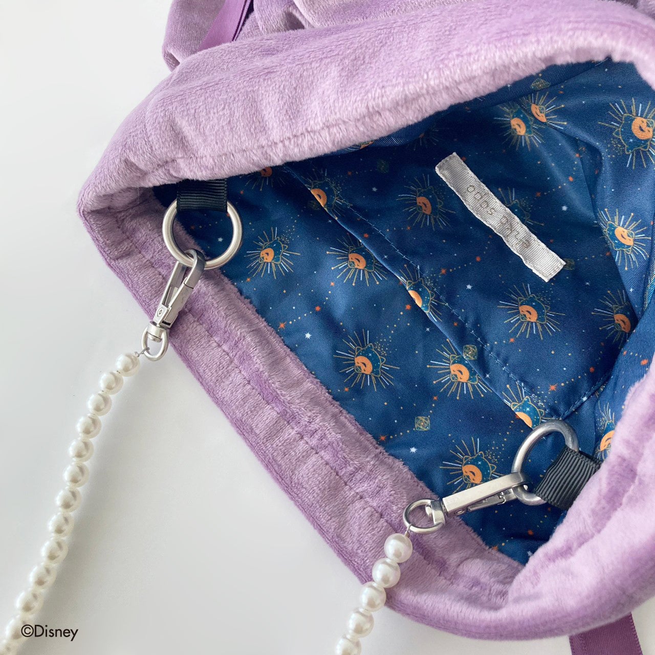 ベロア素材がシーズンライクなバッグは取り外せるパールライクのショルダーストラップがポイント!