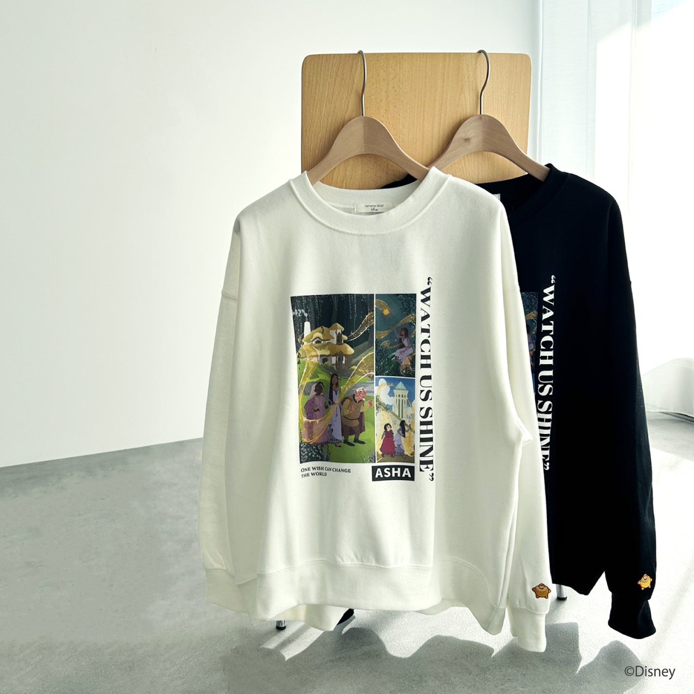デイリーコーデに取り入れたい裏起毛のスウェットにはヒロインの「アーシャ」や願い星の「スター」など物語を彩るキャラクターをプリント。