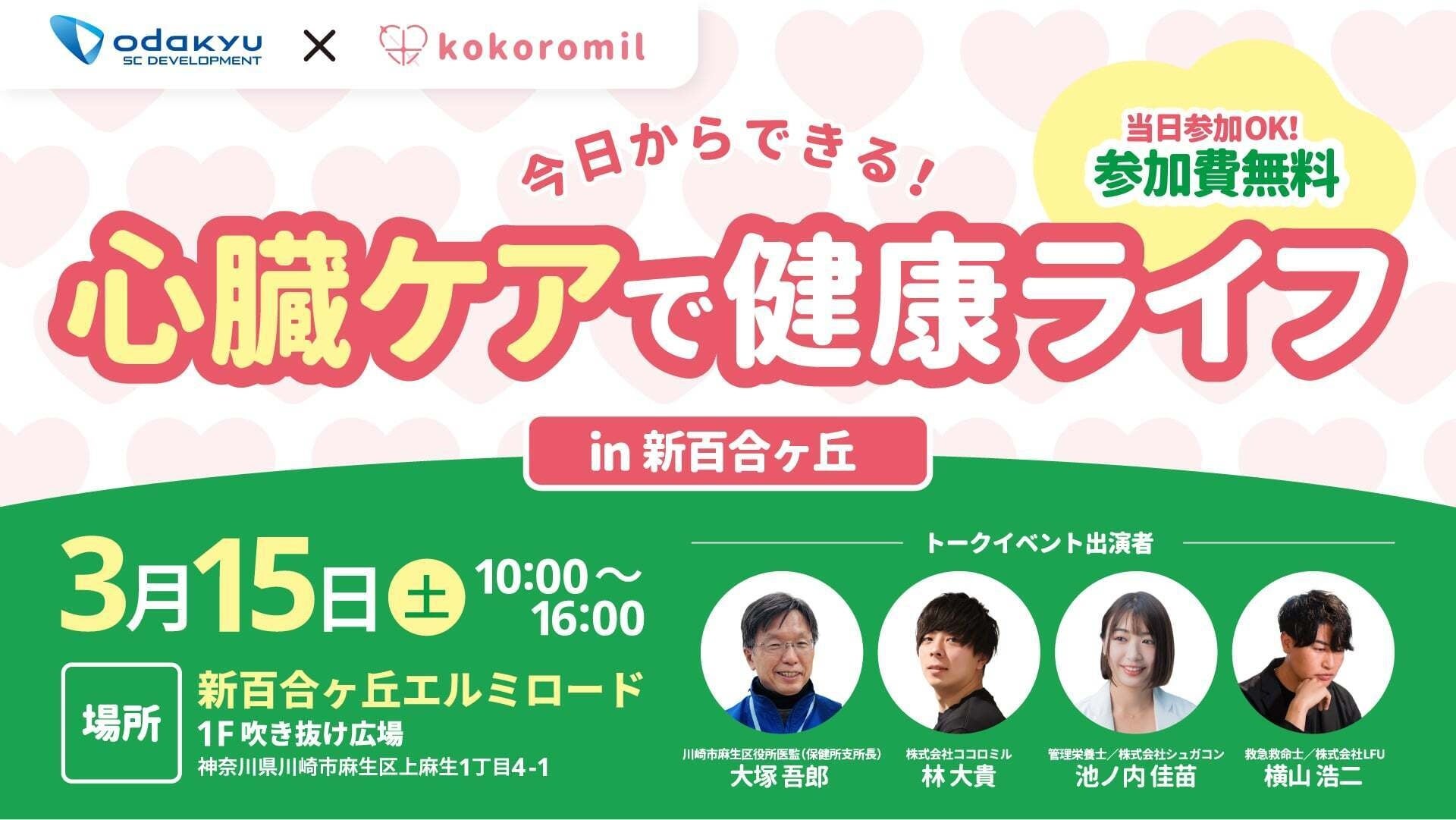 【 神奈川県 BAK × eiicon 未病啓蒙 共創事例 】小田急SCディベロップメント×ココロミル「今日からできる!心臓ケアで健康ライフ」イベントを開催します(3月15日 新百合ヶ丘エルミロード)
