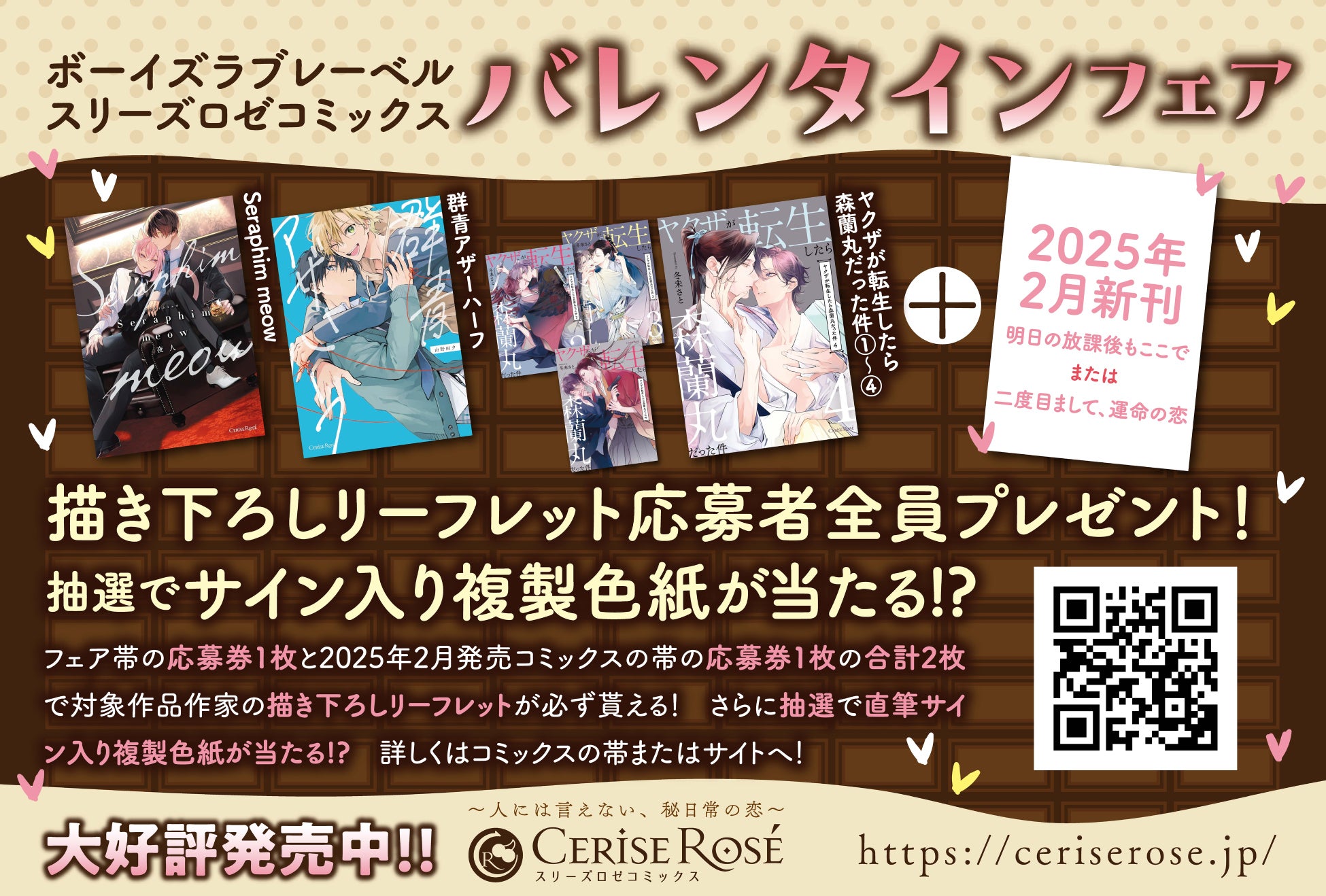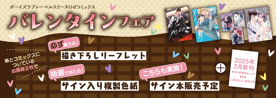 ボーイズラブレーベル【スリーズロゼコミックス】バレンタインフェア開催決定!応募者全員プレゼントに描き下ろしリーフレット!さらに抽選で直筆サイン入り複製色紙が当たる!