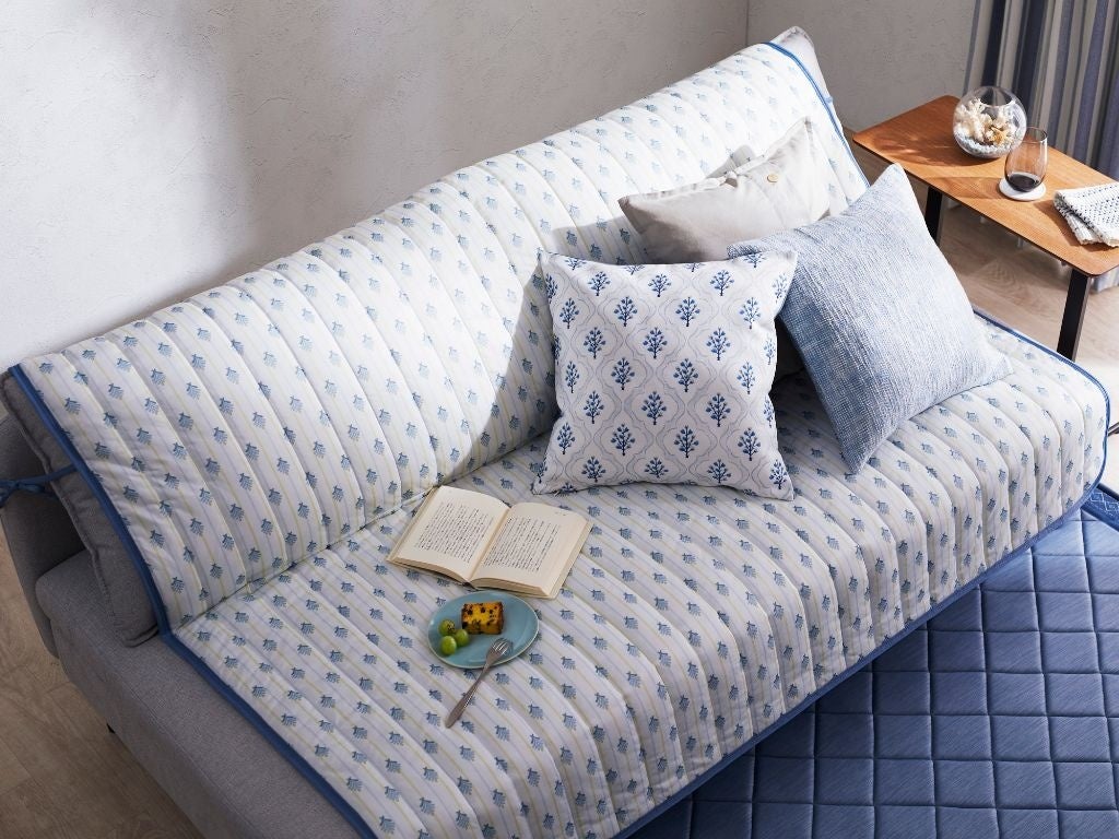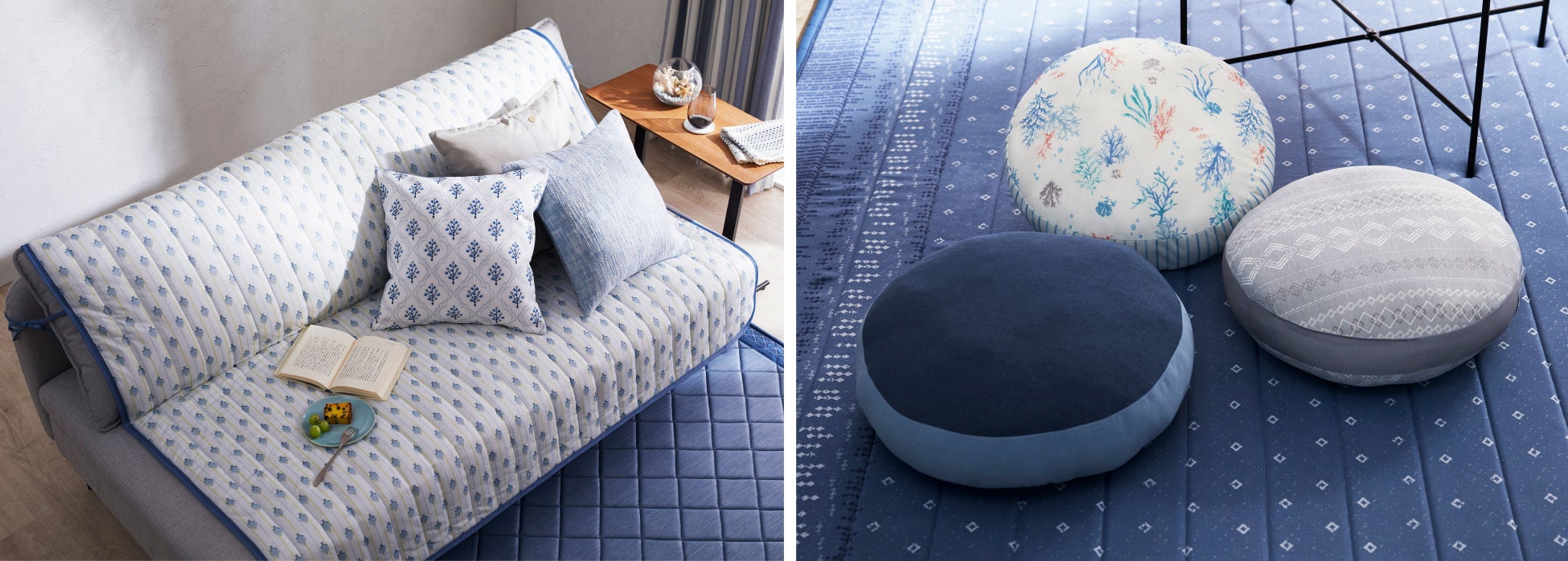 いつものソファが、Nクールのソファパッドをかけるだけで涼しい夏仕様に早変わり。