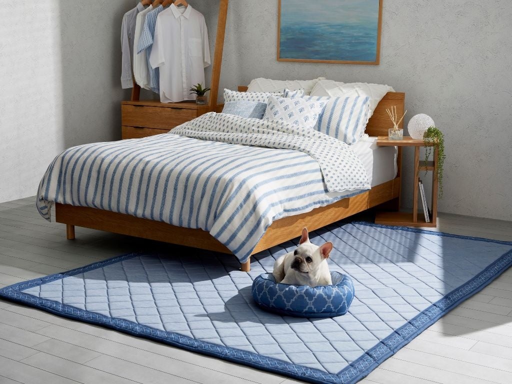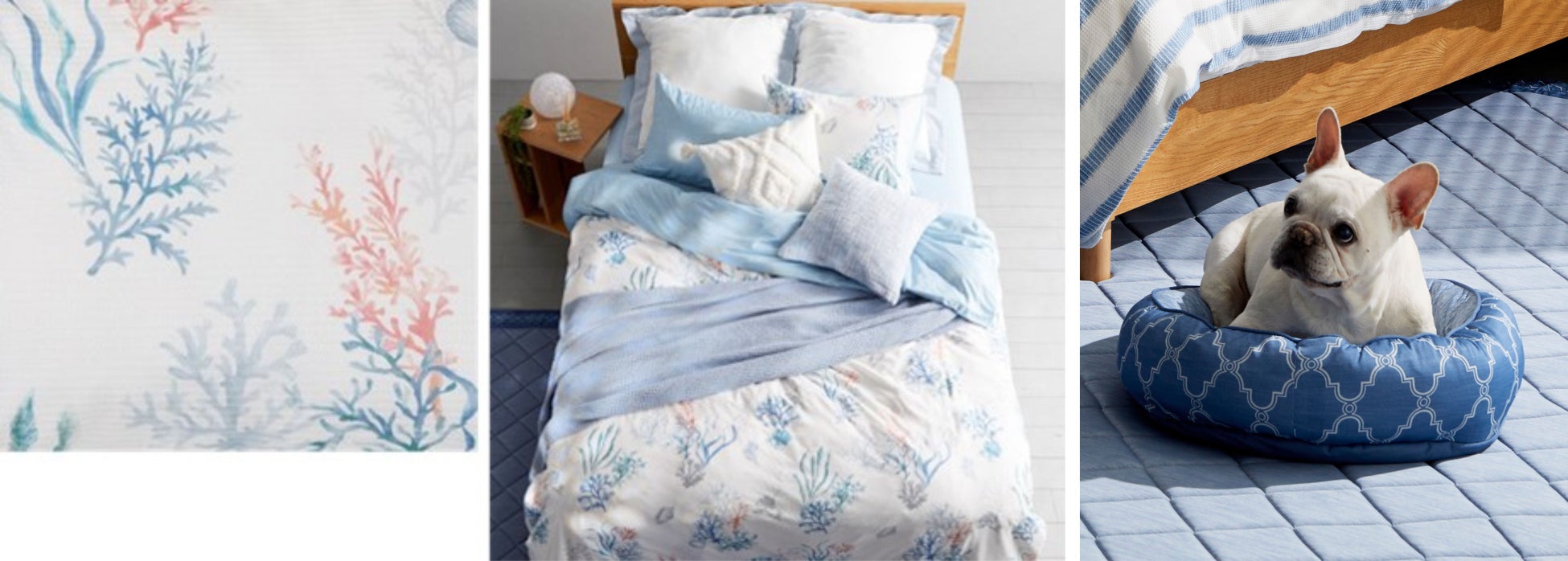 Nクールの寝具カバーに、今年はコーラルリーフ柄が登場。ふれるとひんやり、見た目も涼しいベッドルームができあがります。ペット用ベッドも、Nクールに変えて心地いい眠りを。