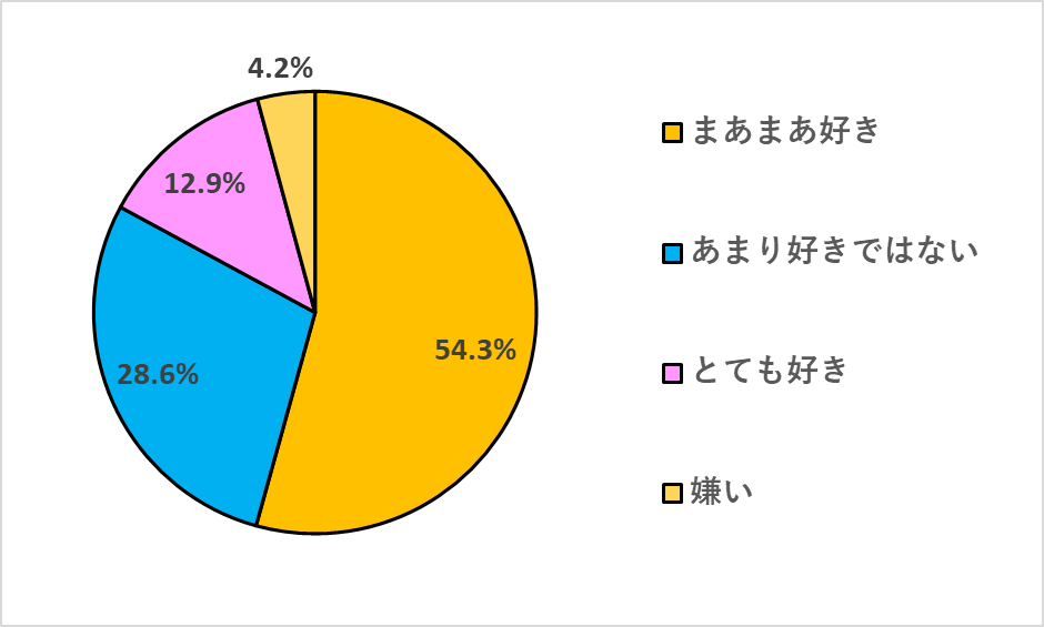 「おせち料理は好きですか?」の質問に対し、「まあまあ好き」という回答が54.3%、「とても好き」という回答が12.9%と、合わせると半数以上の人は、おせち料理が好きなことが分かりました。