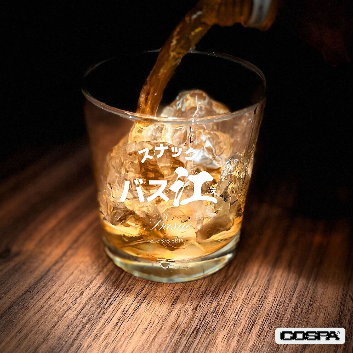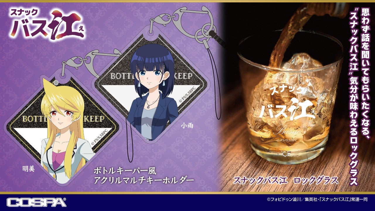 ロックグラスにボトルキーパー風キーホルダー!『スナックバス江』グッズが予約開始!