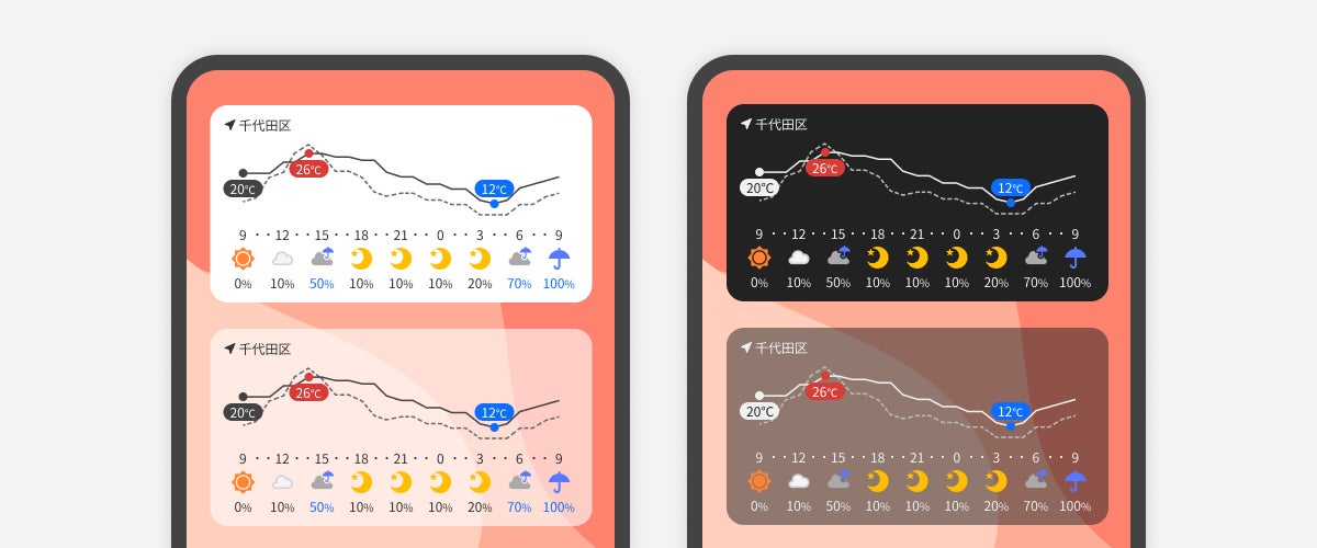 Android版の新ウィジェットにはレスポンシブデザインを採用しており、ユーザーがウィジェットの縦幅や横幅を自由に設定し、表示する情報を調整することが可能です(※2)。またウィジェット背景の透過率も、ユーザーが0%から100%の間で自由に設定できるため、ホーム画面をウィジェット越しに確認できるなど、よりユーザーごとの好みに合わせた自由な表示設定ができるようになったほか、新しいバージョンのOSにも自然に溶け込むデザインを追求しました。